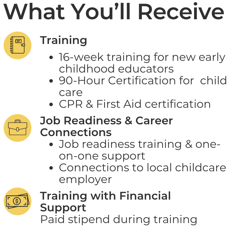 Join a supportive training program designed to help young adults build a meaningful career working with young children.