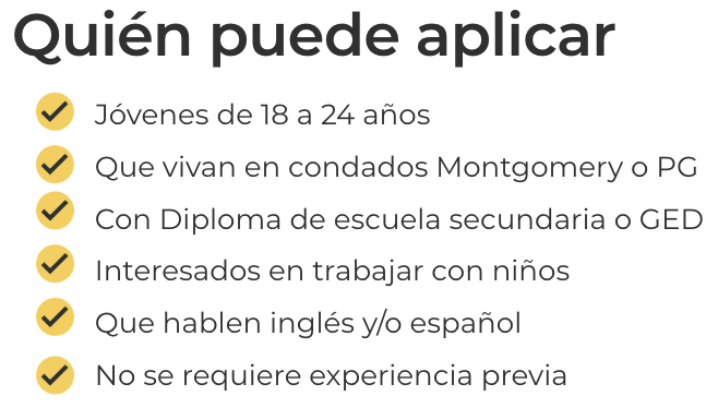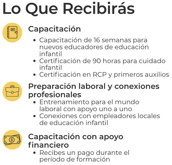 Únete a un programa de capacitación, diseñado para ayudar a jóvenes adultos a construir una carrera significativa trabajando con niños pequeños.